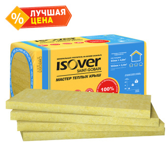 Isover (Изовер) Master of Warm Roofs (Мастер Теплых Крыш) 50x600x1000 – это высококачественный минеральный утеплитель на основе стекловолокна, предназначенный для эффективной теплоизоляции крыш и мансард. Этот продукт сочетает в себе отличные изоляционные свойства, простоту монтажа и долговечность, делая его идеальным выбором для создания комфортного микроклимата в жилых и коммерческих помещениях. С толщиной 50 мм и размерами плит 600x1000 мм, он обеспечивает надежную защиту от холода, жары и шума, способствуя энергосбережению и снижению затрат на отопление.